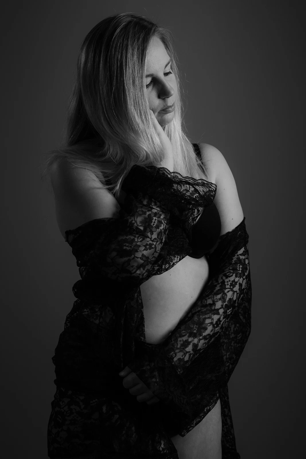 Nu de studio stilaan afgewerkt is, werd het tijd voor de eerste boudoir shoot in de studio.